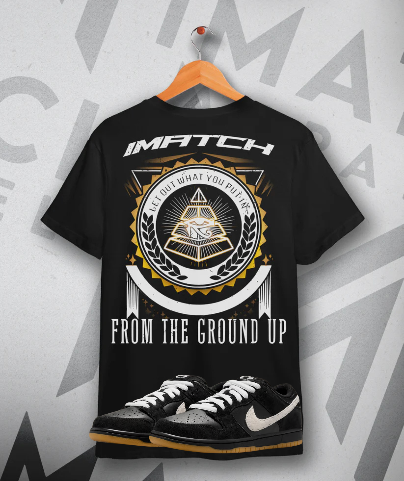 Timeless, clean, and built for those who appreciate the details—the Black Gum tee pays tribute to one of the most iconic colorways in sneaker culture. Designed in a sleek black-and-white combo with hits of the signature gum bottom shade, this shirt is all about effortless style. The back features a bold reminder: ‘Get Out What You Put In,’ with ‘From the Ground Up’ anchoring the message. A perfect balance of classic and modern, made for those who keep their mindset sharp and their fit sharper.