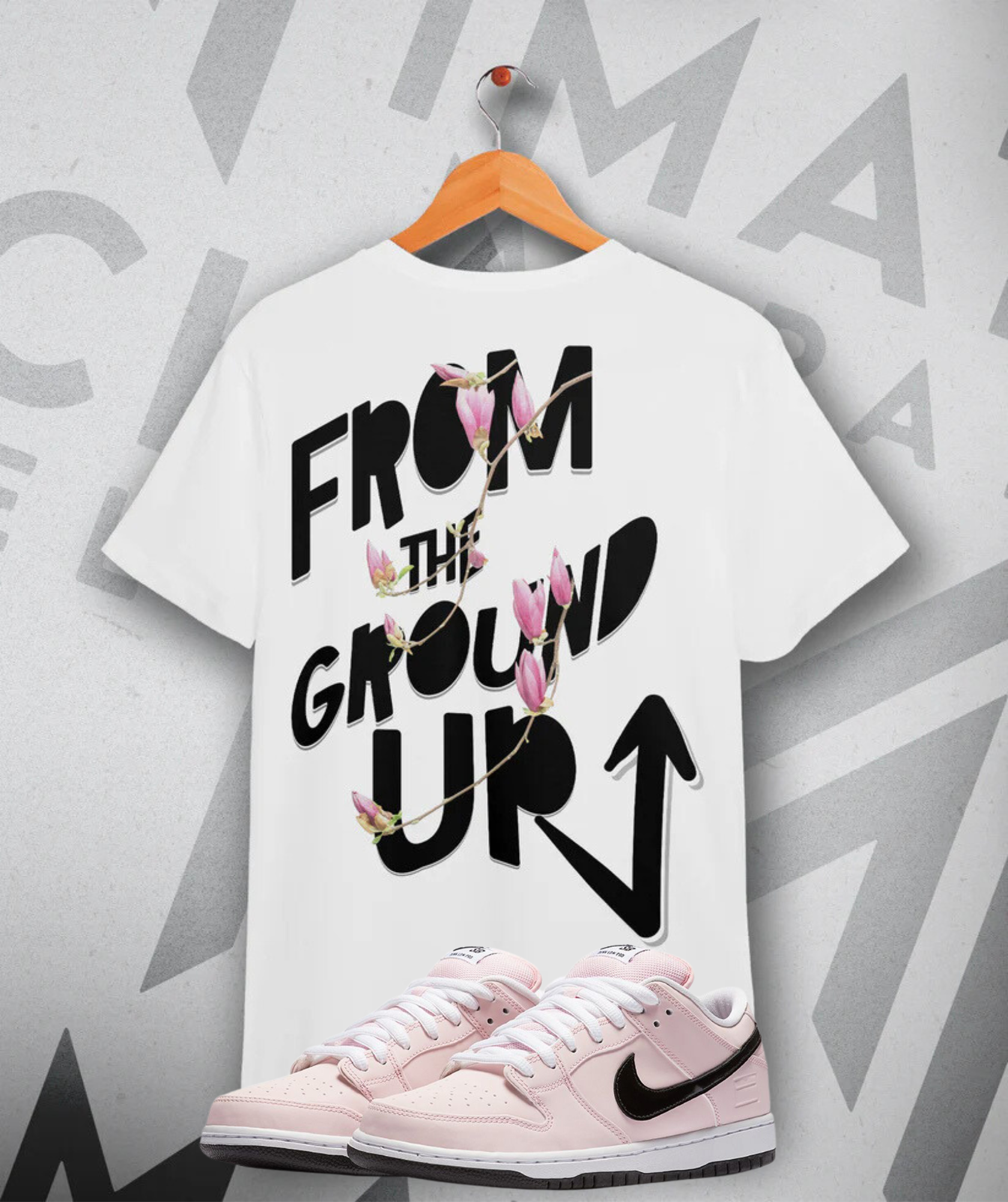 This one’s for the quiet bloomers and grounded visionaries. The Floral Tee features a soft cascade of “iMatch” lettering on the chest, gently wrapped in a floral vine. Flip it around and the back hits with bold “From The Ground Up” typography, intertwined with blooming magnolia, symbolizing the beauty in patience, progress, and purpose.