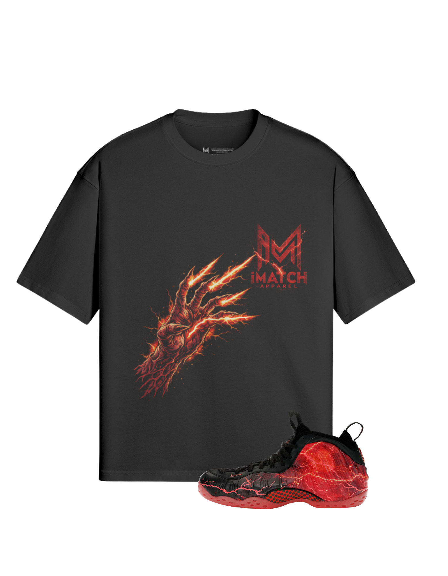 Designed with a bold crimson palette to match the shoeโs electric lightning veins, this graphic captures the chaos, power, and mystery of what lies on the other side.